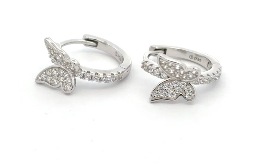 Oksana CZ Huggie With CZ Butterfly Earrings