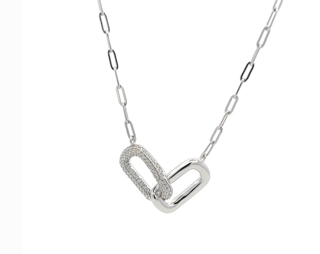 Joni CZ Interlocking Oval Necklace With Paperclip Chain