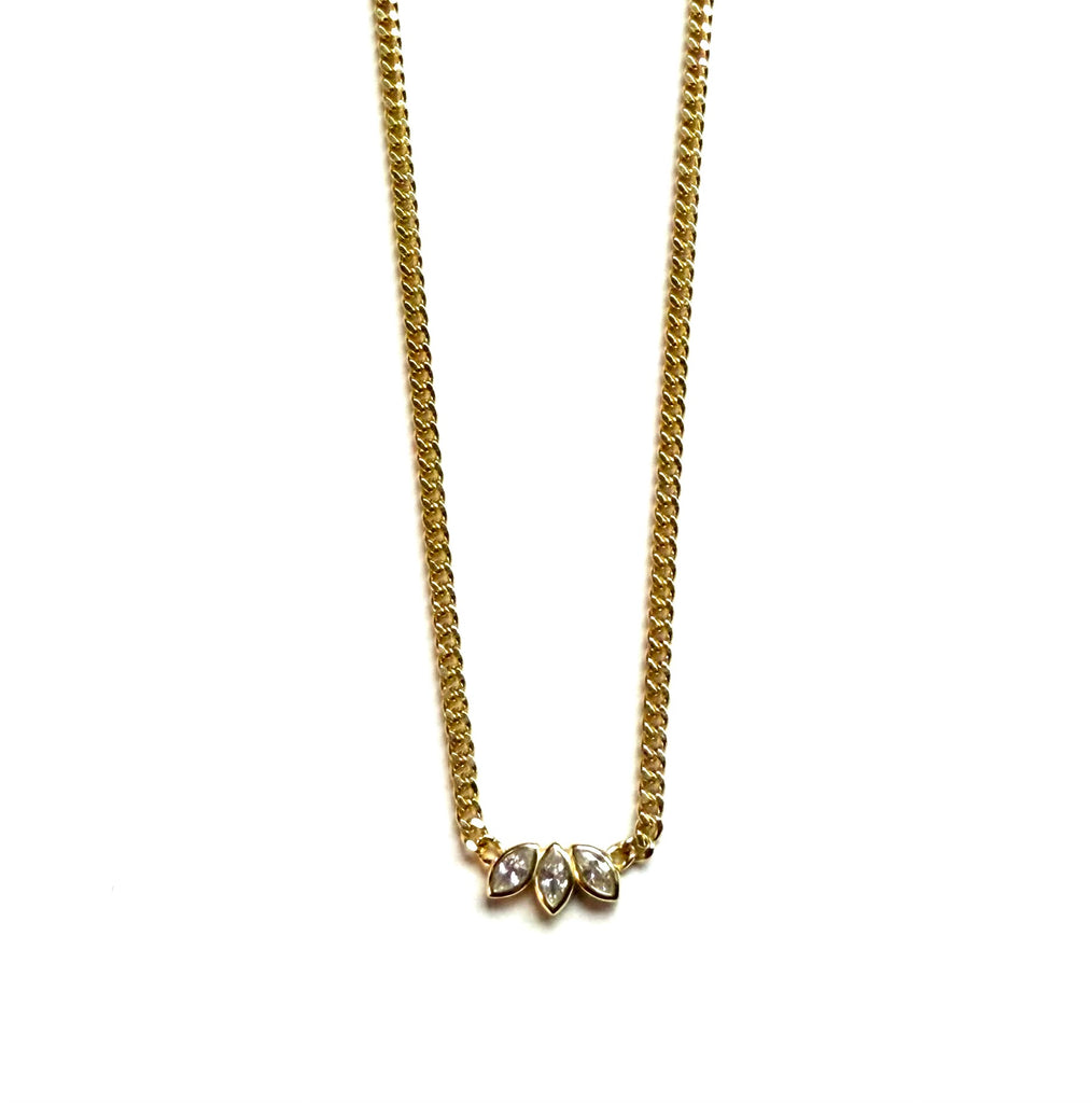 Witney CZ Triple Marquis Bezel & Herringbone Chain Necklace