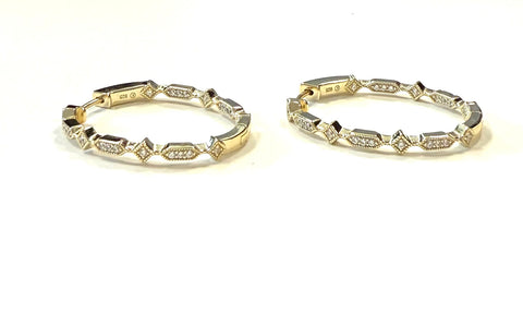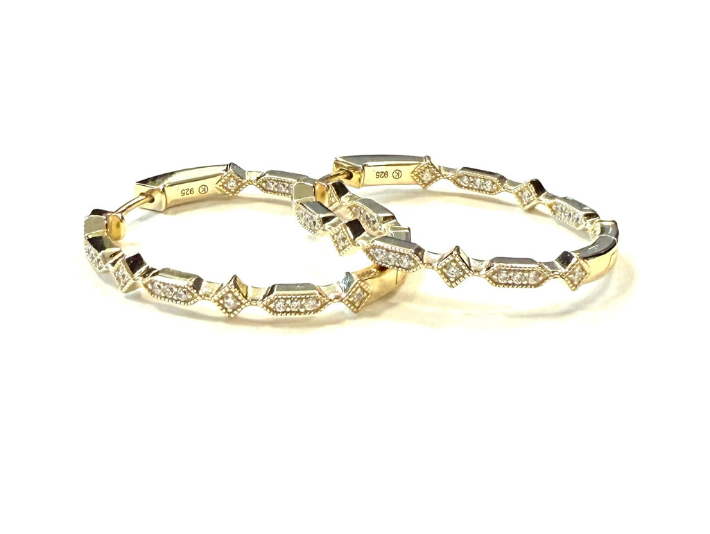 Glenda Oval Vintage CZ Inside Out Hoop Earrings